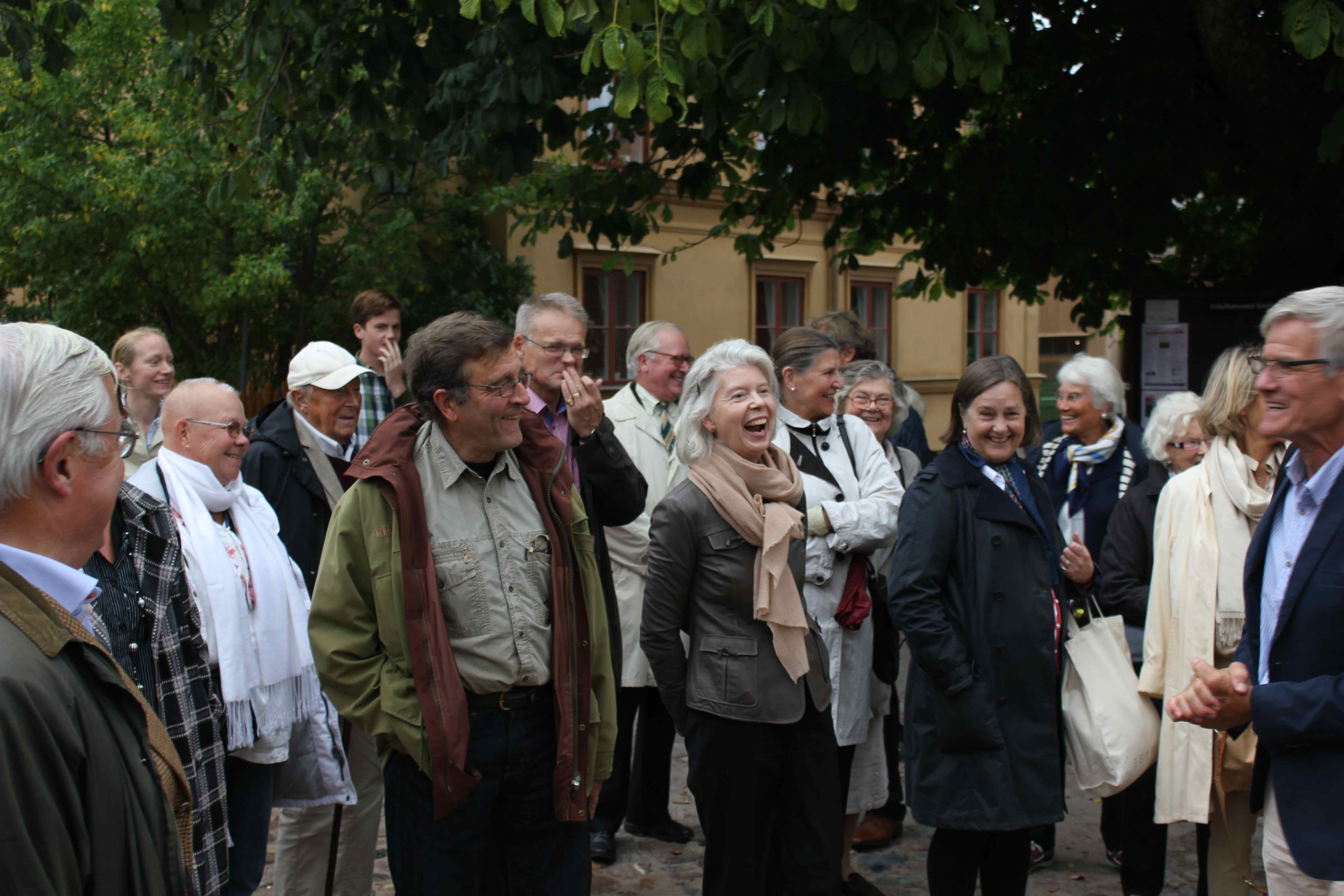 Vi var nästan 50 personer som samlades vid värdshuset i gamla Linköping för att njuta av en eftermiddag tillsammans och för att insupa lite släkthistoria. Vi började dagen med att äta en fantastiskt trevlig lunch och njuta av de kåserier om släktingar och nästan släktingar som framfördes helt spontant av de hågade. Redan under lunchen presenterade sig också vår guide till Linköpings stad och historia: Sigvard Hallendorf. Sigvard visade sig vara en mycket kunnig och vältalig herre som efter att ha visat oss gamla Linköping tog oss med på en rask vandring genom de mer centralare delarna av staden. Vi lärde oss om allt från slaget vid Stångebro, Stångåns vattenkvalitet, bröderna Ugglas företagssamhet och slutligen om generalen Gustaf Uggla och hans familj.